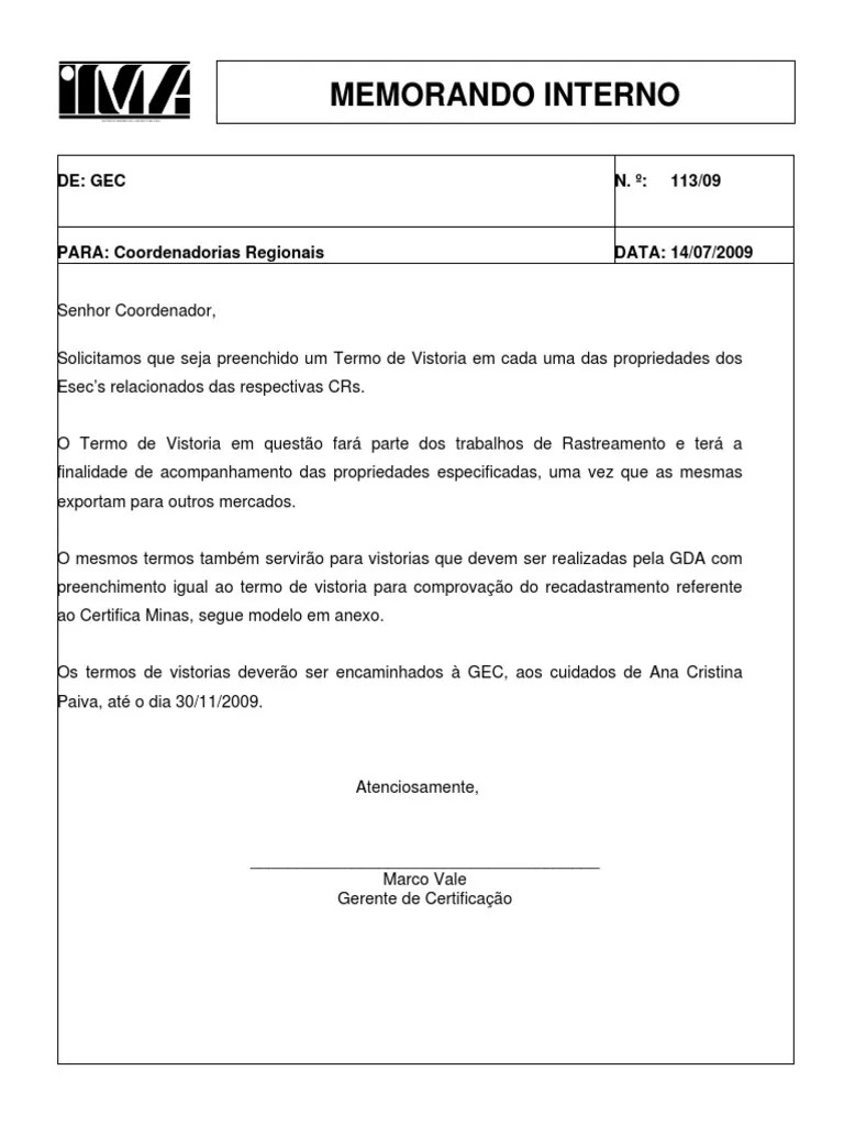 • Memorando – Forma de comunicação escrita entre unidades/seções de uma empresa, sendo utilizada como um instrumento que facilita a transmissão de informação